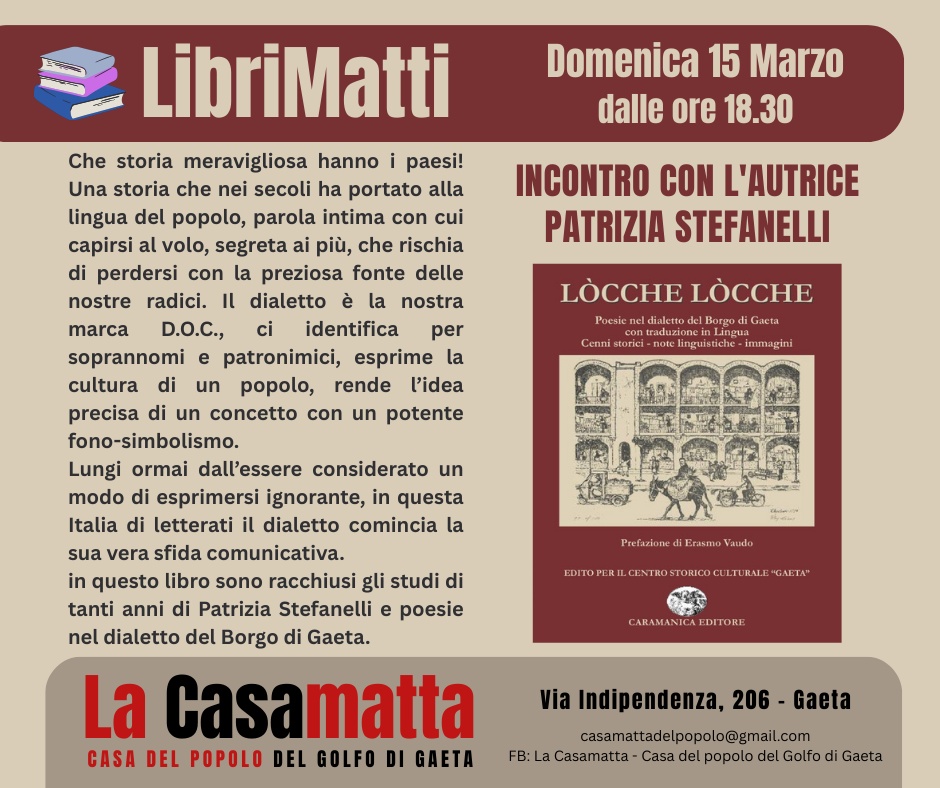 in questo libro sono racchiusi gli studi di tanti anni di Patrizia Stefanelli e poesie nel dialetto del Borgo di Gaeta.