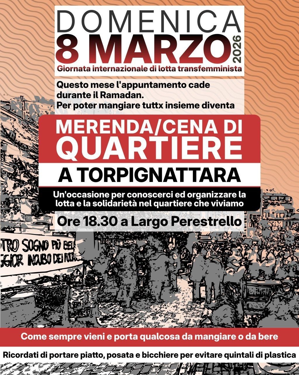 Questo mese l'appuntamento cade durante il Ramadan, per poter mangiare tuttx insieme diventa quindi una merenda e cena di quartiere a Torpignattara