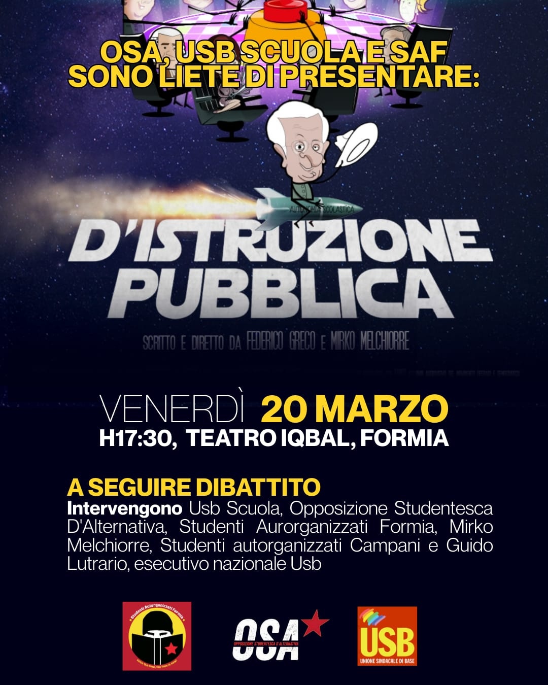 Proiezione e dibattito - interverranno USB Scuola - SAF - Mirko Melchiorre - Opposizione Studentesca D'alternativa - SAC